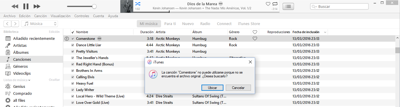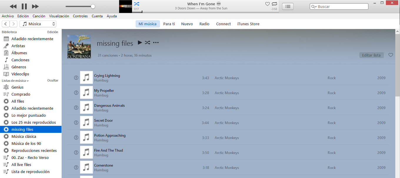 Al abrir el iTunes después de organizar las carpetas de música en tu PC, seguramente encontrarás canciones con un signo de admiración, ya sea porque las moviste, o eliminaste.
